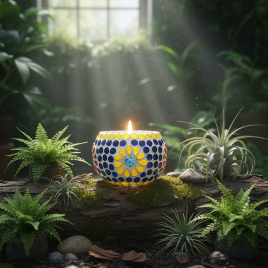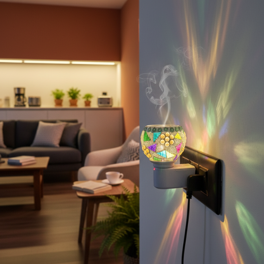 Handcrafted RainbowCrest Glass Shards Camphor & Oil Diffuser Lamp (Kapoor Dani)