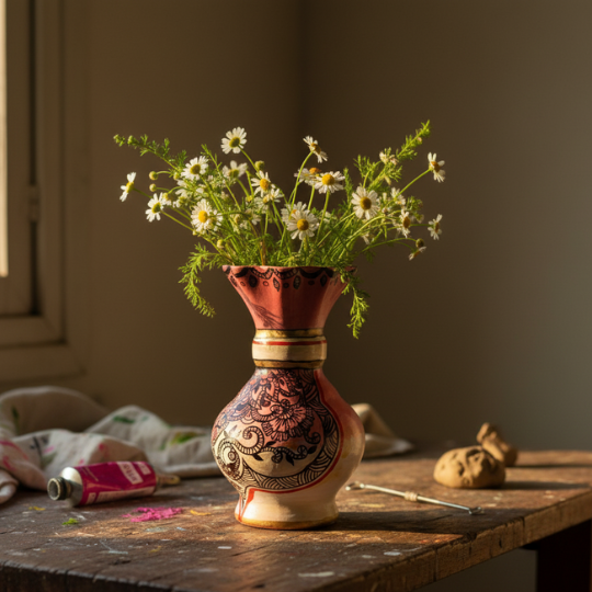 Handpainted Timeless Motif Terracotta Pen/tissue paper Holder